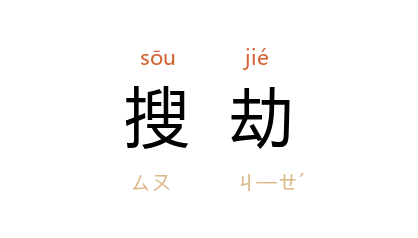 引《初刻拍案惊奇·卷一四》:「于大郊将手去按杨化鼻子底下,已无气了。就于腰间搜劫前银,连缠袋取来,缠在自己腰内。」