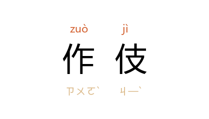 ⒈ 亦作“作妓”。谓表演歌舞或演奏音乐。