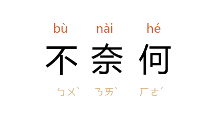 引唐 张松龄 《渔父》词:“珍重意、下长波,半夜潮生不奈何。”《宣和遗事》前集:“朝廷不奈何,只得出榜招諭 宋江 等。”