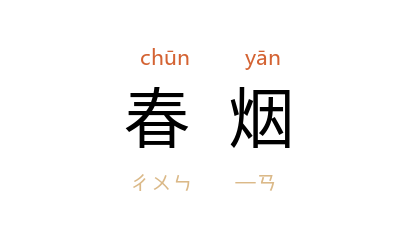 引《魏书·常景传》:“长卿 有艷才,直致不羣性,鬱若春烟举,皎如秋月映。”唐 张说 《和张监游终南》:“春烟生古石,时鸟戏幽松。”元 赵孟頫 《桃源春晓图》诗:“桃花源 里得春多,洞口春烟摇緑萝。”