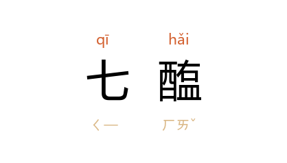 引《周礼·天官·醢人》:“以五齐、七醢、七菹、三臡实之。”郑玄 注:“七醢:醓、蠃、蠯、蚳、鱼、兔、鴈醢。”明 邵璨 《香囊记·琼林》:“异品朱樱緑笋,香葅紫蕨青葵,五齏七醢与三臡,总是仙庖珍味。”