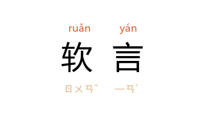 引《敦煌变文集·伍子胥变文》:“子胥 被认相辞谢,方便软言而帖写。”《警世通言·杜十娘怒沉百宝箱》:“十娘 抱持公子於怀间,软言抚慰道:‘……夫妇之间,死生相共,有事儘可商量,万勿讳也。’”