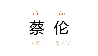 ⒈ 东汉造纸技术发明家。字敬仲。桂阳(治今湖南郴州)人。在皇宫中任宦官四十余年,曾参与政事,被封为龙亭侯。改进西汉以来用丝麻纤维造纸的技术,用树皮、麻头、破布、旧渔网为原料造纸,不仅原料易得,且造纸质量提高。这种纸时称“蔡侯纸”。