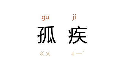 引《国语·晋语七》:“逮鰥寡,振废淹,养老幼,恤孤疾,年过七十,公亲见之。”韦昭 注:“无父曰孤;疾,废疾也。”《左传·襄公二十六年》:“雍子 发命于军曰:‘归老幼,反孤疾,二人役,归一人,简兵蒐乘,秣马蓐食,师陈焚次,明日将战。’”