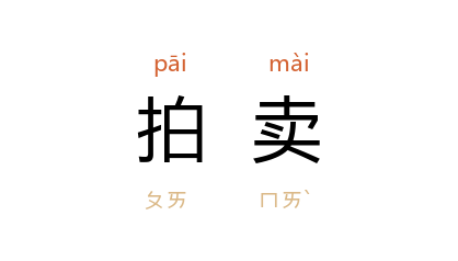 ⒈ 商业中的一种买卖方式。一般是由出卖者把现货或样品陈列于商行当众出卖,由购买者竞相出价争购,直到无人再加价时,就拍板作响,表示成交。