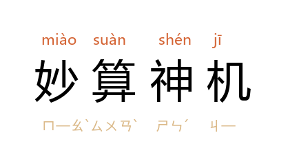 引清 李渔 《怜香伴·闻试》:“且看你妙算神机,出人头地。”清 李渔 《比目鱼·伪隐》:“妙算神机,异勇奇能,会将来,会将来佐真主,承天命。”