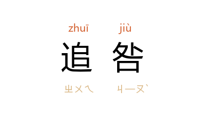 引晋 王羲之 《遗殷浩书》:“追咎往事,亦何所復及!”唐 柳宗元 《上岭南郑相公所著文启》:“追咎既往,自以终身沉废,无跡自明。”宋 苏轼 《代张方平谏用兵书》:“且意陛下他日亲见用兵之害,必将哀痛悔恨,而追咎左右大臣未尝一言。”明 陆垹 《篑斋杂著·湿润》:“文襄 周公 之画,识者不能无追咎焉。”