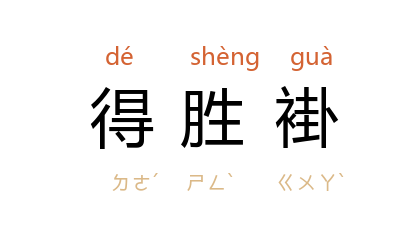 ⒈ 马褂的一种。 清 代服饰。 徐珂 《清稗类钞·服饰·对襟马褂》:“得胜褂,为马褂之一种。对襟方袖。初仅用之於行装,俗称对襟马褂。