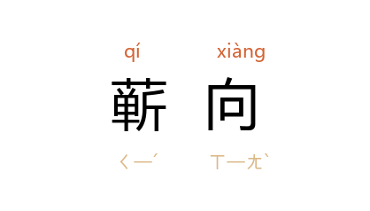 引李大钊 《青春》:“贤者仁智俱穷,不肖者流连忘返,而人生之蘄向荒矣,是又岂青年之所宜出哉?”李大钊 《今》:“我尝推广其意,也説过人生唯一的蘄向,青年唯一的责任,在从现在青春之我,扑杀过去青春之我,促今日青春之我,禪让明日青春之我。”