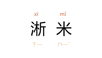 引《仪礼·士丧礼》:“祝淅米于堂,南面用盆。”郑玄 注:“淅,汏也。”《淮南子·兵略训》:“百姓开门而待之,淅米而储之。”高诱 注:“淅,渍也。”南朝 宋 刘义庆 《世说新语·排调》:“桓南郡 与 殷荆州 语次……復作危语。 桓 曰:‘矛头淅米劒头炊。’ 殷 曰:‘百岁老人攀枯枝。’”清 蒋士铨 《桂林霜·出抚》:“淅米向矛头,鞭影遥挥南斗。”