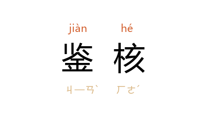 ⒈ 鉴察核定。通常用于公文中对上级机关或首长的期望及目的语。也作「鉴核」。