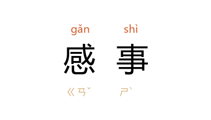 例如:「唐朝诗人的感事之作,每能触动人心。」