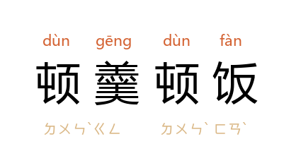 引《水浒传》第二四回:“那妇人顿羹顿饭,欢天喜地伏侍 武松,武松 倒过意不去。”《金瓶梅词话》第一回:“武松 每日自去县里承差应事,不论归迟归早,妇人顿羹顿饭,欢天喜地服事 武松。”