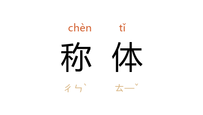 引《水浒传》第二三回:“取出一箱缎匹绸绢,门下自有针工,便叫做三人的称体衣裳。”袁枚 《随园诗话》卷三引 清 侯光第 《山塘竹枝词》:“当鑪十五髩堆鸦,称体单衫浅碧纱。”郭小川 《钢铁是怎样炼成的》诗:“他们身穿不称体的草绿色军服。”