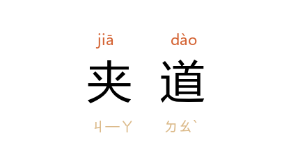 引《红楼梦·第四回》:「西南又有一角门,通一夹道,出了夹道,便是王夫人正房的东院了。」