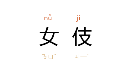 ⒊ 歌舞妓或乐妓。也作「女妓」。