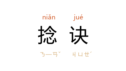 引《平妖传》第十七回:“张鸞 捻诀念咒,作用已毕。”《西游记》第二七回:“﹝ 三藏 ﹞果然信那呆子的攛唆,手中捻诀,口里念咒。”《西游记》第七六回:“﹝ 行者 ﹞即捻诀念起真言,摇身一变,即变做个蟭蟟虫。”