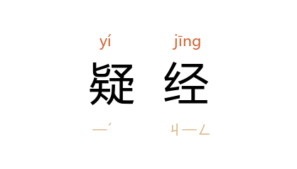 引《隋书·经籍志四》:“大业 时,又令沙门 智果,於 东都 内道场,撰诸经目,分别条贯,以佛所説经为三部:一曰大乘,二曰小乘,三曰杂经。其餘似后人假托为之者,别为一部,谓之疑经。”