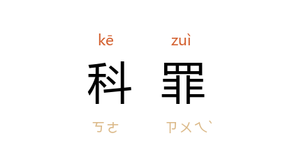 引《晋书·王濬传》:“濬 至京都,有司奏, 濬 表既不列前后所被七詔月日,又赦后违詔不受 浑 节度,大不敬,付廷尉科罪。”唐 韩愈 《请复国子监生徒状》:“其新补人有冒荫者,请牒送法司科罪。”清 纪昀 《阅微草堂笔记·滦阳消夏录二》:“某生活二人,正为欲污二人,但宜科罪,何云功罪相抵也?”
