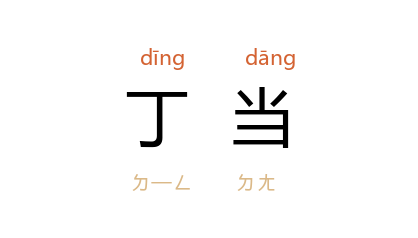 ⒈ 状声词。形容金属、瓷器、玉石等撞击的声音。也作「叮当」。