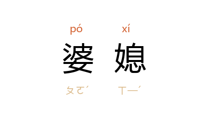引《儒林外史·第三回》:「说罢,婆媳两个,都来坐著吃了饭。」《红楼梦·第七回》:「早有贾珍之妻尤氏,与贾蓉之妻秦氏,婆媳两个引了多少姬妾丫鬟媳妇等,接出仪门。」