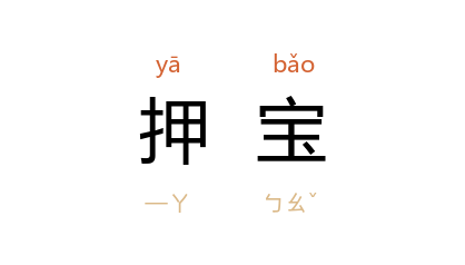 ⒈ 猜测宝上所指的方向下注——亦作“压宝”