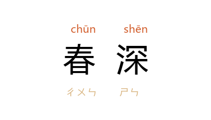 引唐 储光羲 《钓鱼湾》诗:“垂钓緑湾春,春深杏花乱。”宋 秦观 《次韵裴仲谟和何先辈》:“支枕星河横醉后,入帘飞絮报春深。”许地山 《危巢坠简·春桃》:“春桃 愉悦的声音就像春深的莺啼一样。”