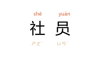 例如:「登山社社员」、「合作社社员」。