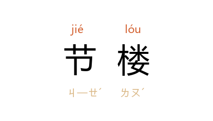 引《新唐书·百官志四下》:“﹝节度使﹞入境,州县筑节楼,迎以鼓角。”元 刘壎 《隐居通议·地理》:“宋 制:节度使官仪甚盛,其家建巍楼,植纛其中,有黄幡豹尾之属,名之曰节楼。”