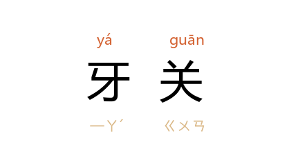 引《红楼梦》第一一〇回:“贾母 的牙关已经紧了。”茅盾 《追求》五:“一句老话,‘还是教育界好些’,已经冲到牙关,又被他捺住了。”