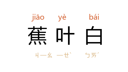 ⒈ 端州 砚石的一种花纹。产于 广东 肇庆 羚羊峡 北岸坑。石质坚润,色青,纹理间有纯白片如蕉叶者,故名。用此石制成的砚,亦名“蕉叶白”,为端砚的一种。