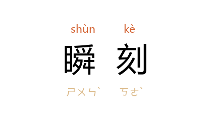 引郭沫若 《我的童年》第三篇六:“平常五哥和五嫂差不多是瞬刻不离的,那晚他却为诗谜所缠缚着了。”郭沫若 《海涛集·南昌之一夜》:“‘但他总有一天会觉察到,谁是在为他革命的生命着想,谁是阿谀着他断送他的革命的生命的。’这是 择生(邓演达 )临到那样的瞬刻所说的话。”