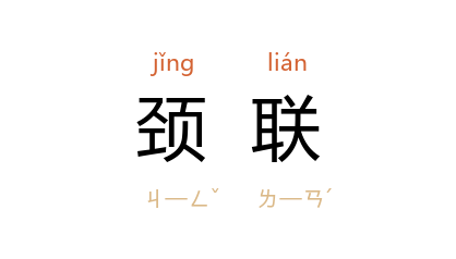 引宋 严羽 《沧浪诗话·诗体》:“有頷联,有颈联。”明 徐渭 《答龙溪师书》:“颈联乃因今年中秋月盈,而及往年中秋月蚀。”清 洪亮吉 《北江诗话》四:“其( 杨煒 )《自嘲》一首,余极爱其颈联。”《诗刊》1978年第1期:“我以为这首诗的颈联(第五、六句)比颔联(第三、四口)更好,没有一点斧凿的痕迹。”
