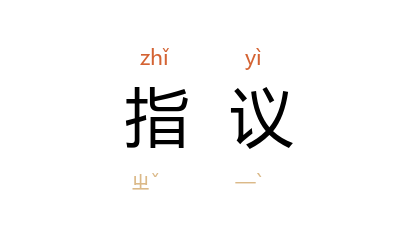 引宋 李之仪 《跋文安国篆》:“尝谓其宿畴预计不如是,必有脱略可指议处。”宋 叶绍翁 《四朝闻见录·太学诸生置绫纸》:“郑昭先 为臺臣,倏当言事月,谓之月课。 昭先,纯谨人也,不敢妄有指议。”