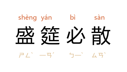 引《红楼梦·第一三回》:「要知道也不过是瞬息的繁华,一时的欢乐,万不可忘了那『盛筵必散』的俗语。」