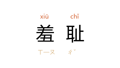 引汉·王充《论衡·程材》:「昼夜学问,无所羞耻。」《西游记·第二四回》:「呆子对他们只是磕头礼拜,其实羞耻难当。」