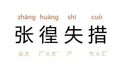 张徨失措[ zhāng huáng shī cuò ]