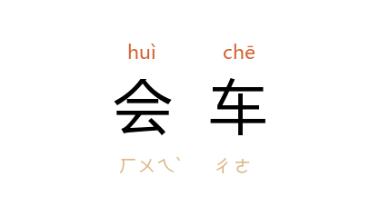 ⒈ 相向行驶的车辆或列车交错通过同一地点。在单线铁路上,两列车会车时,一般由先到站的列车停车等候,待对方驶来的列车到达,然后开出。俗称交车、错车。