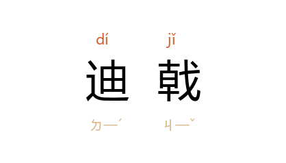⒈ 即棨戟。形似戟。古代尊者出行时的仪仗之一。 五代 马缟 《中华古今注·戈戟》:“戟以木为之……亦谓之迪戟,亦谓之棨戟,公王以下通用以为前駈。