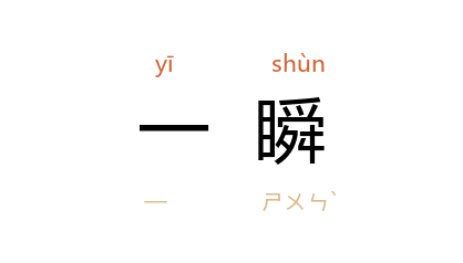 ⒈ 一眨眼。佛书中以二十念为一瞬,二十瞬为一弹指。见《翻译名义集·时分》。参见“一弹指”。喻指极短的时间。