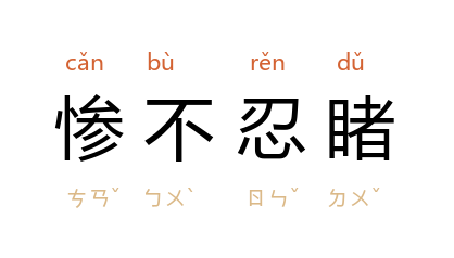 例如:「车祸现场,血肉横飞,令人惨不忍睹。」
