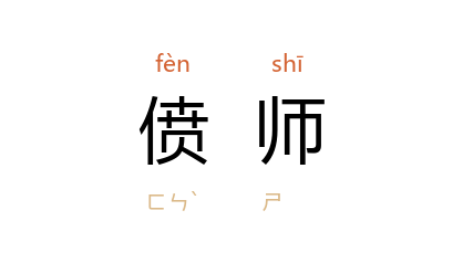 引明 唐顺之 《陞通政司右通政谢表》:“在古,文臣建国,或以权任轻浅而僨师;大将临戎,或以章奏壅隔而败事。”清 昭槤 《啸亭杂录·廓尔喀之降》:“是役也, 巴忠 既辱国於前, 福康安 復僨师於后。”
