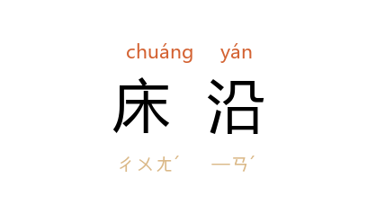 引《儒林外史·第五四回》:「便走了来,一屁股坐在床沿上。」《红楼梦·第三〇回》:「林黛玉只顾拭泪,并不答应。宝玉因便挨在床沿上坐了。」