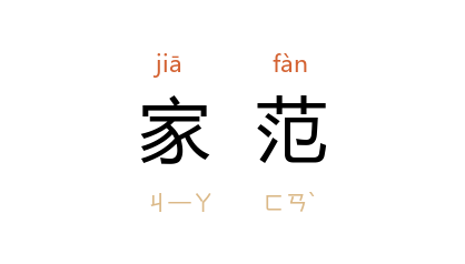 引《旧唐书·崔珙传》:“礼乐二事,以为身文;仁义五常,自成家范。”宋 陈亮 《祭王文卿父母文》:“昔我诸兄与其乡人诸友,乃从先公游,磨礱乎道义,而服膺其家范之懿,至今在耳歷歷也。”元 揭傒斯 《逸士陈君墓志铭》:“其曾大父 亨,大父 世兴,父 应軾,皆事高尚,而家范齐肃如素官。”清 蒲松龄 《聊斋志异·青凤》:“女乃喜曰:‘妾少孤,依叔成立。昔虽获罪,乃家范应尔。’”