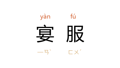 引《后汉书·礼仪志》:“五时朝服各一袭在陵寝,其餘及宴服皆封以篋笥,藏宫殿后閤室。”日常闲居时穿的衣服。 《旧唐书·舆服志》:“讌服,盖古之褻服也,今亦谓之常服。 江 南则以巾褐裙襦, 北朝 则杂以戎夷之制。爰至 北齐,有长帽短靴,合袴袄子,朱紫玄黄,各任所好。虽謁见君上,出入省寺,若非元正大会,一切通用。”