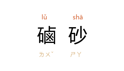 ⒈ 一种矿石。成分为氯化铵,属于等轴晶系,多呈壳状或粉块状。有玻璃光泽,无色,含咸味,可供医药及冶炼用。也作「卤砂」。