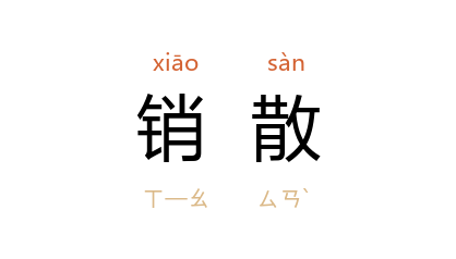 引《后汉书·郭伋传》:“伋 到,示以信赏,纠戮渠帅,盗贼销散。”唐 卢纶 《太白西峰偶宿晨登前巘凭眺书怀即事》诗:“白云销散尽, 陇 塞儼然秋。”朱自清 《桨声灯影里的秦淮河》:“我们下船后,藉着新生的晚凉和河上的微风,暑气已渐渐销散。”
