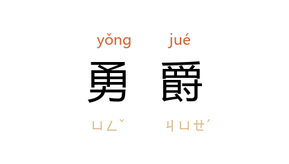 ⒈ 《左传·襄公二十一年》:“庄公为勇爵,殖绰、郭最欲与焉。”杜预注:“设爵位以命勇士。”后用以指武将。