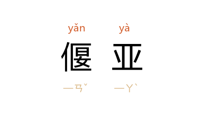 引唐 白居易 《司马厅独宿》诗:“荒凉满庭草,偃亚侵簷竹。”宋 梅尧臣 《元日朝》诗:“放仗旌旗方偃亚,迴头宫闕更嵯峨。”