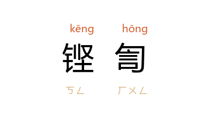 引宋 洪迈 《容斋随笔·左氏书事》:“晋厉公 絶 秦,数其五罪,书词鏗訇,极文章鼓吹之妙。”郑文焯 《鹤道人论词书》:“玉田 崇四家词,黜 柳(柳永 )以进 史(史达祖 ),盖以 梅溪 声韵鏗訇,幽约可讽,独于律未精细。”